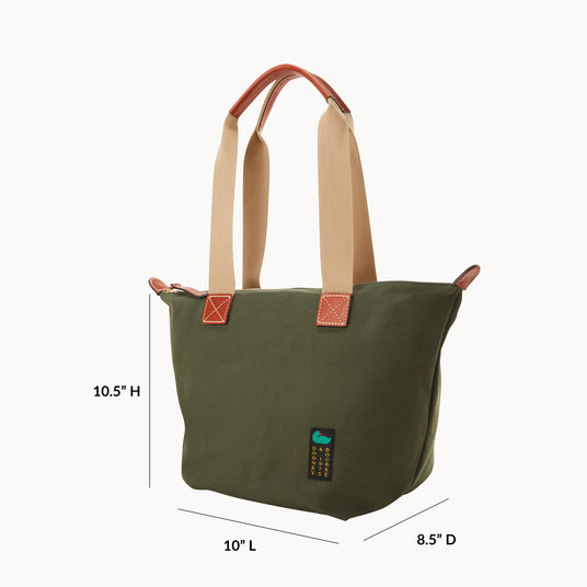The Canvas Carryall 28 offers the perfect balance of space and simplicity for everyday use. Its roomy interior easily accommodates a tablet, book, water bottle, full-size wallet, sunglasses case, and makeup pouch, with extra room for small accessories or a light sweater. A wide opening allows for easy access to essentials, while interior organization keeps daily items neatly arranged and within reach.
