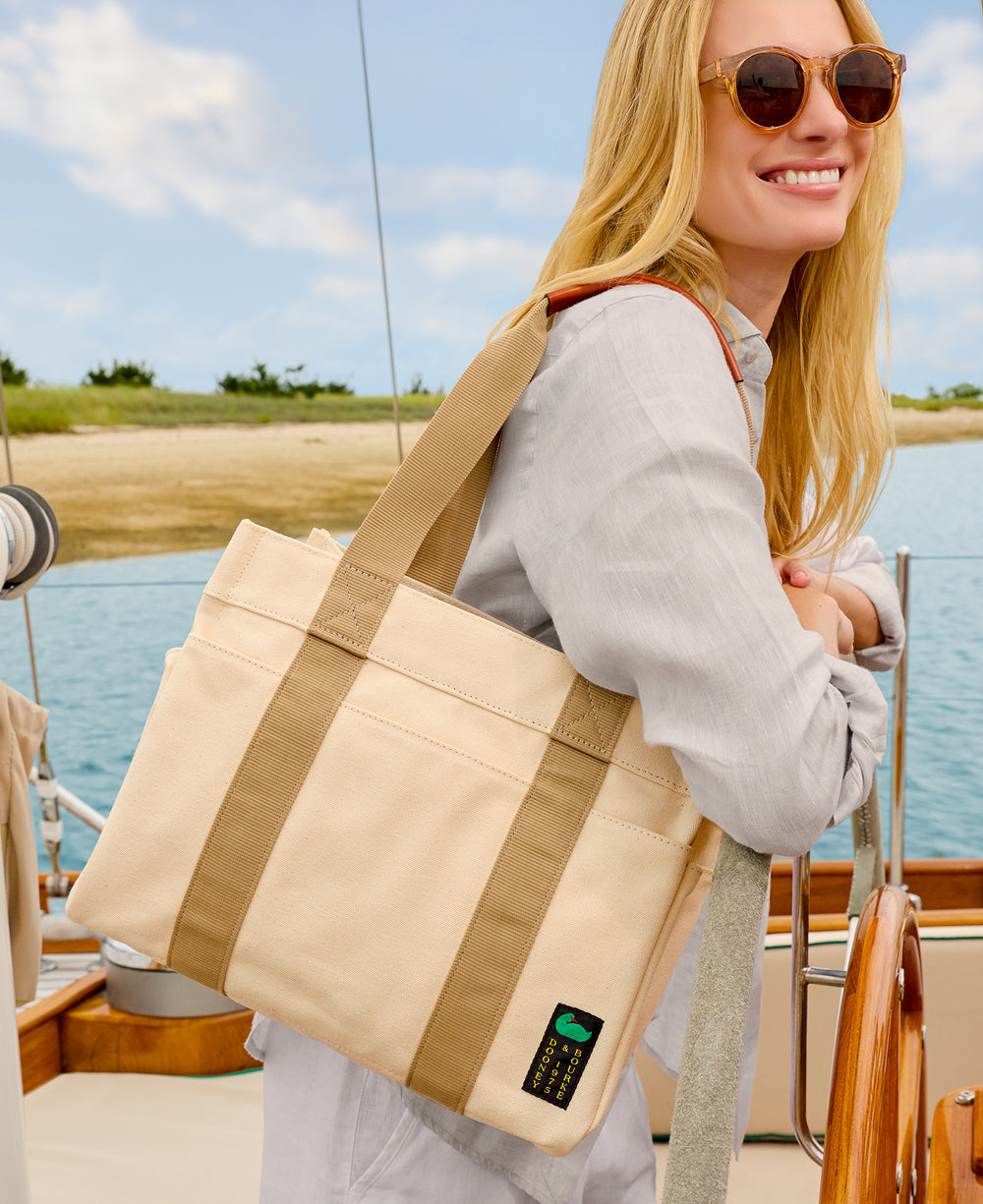 Get ready for adventure with this lightweight 100% Egyptian cotton canvas tote, woven in Italy featuring Vacchetta leather handles and various pockets that will keep you organized on the go.Details
