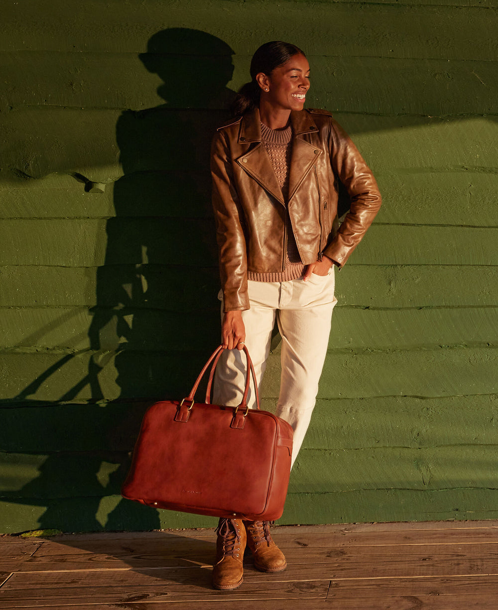 This durable duffle, made from Italian Vacchetta leather that grows softer with age, brings back a classic silhouette with some modern upgrades.Details