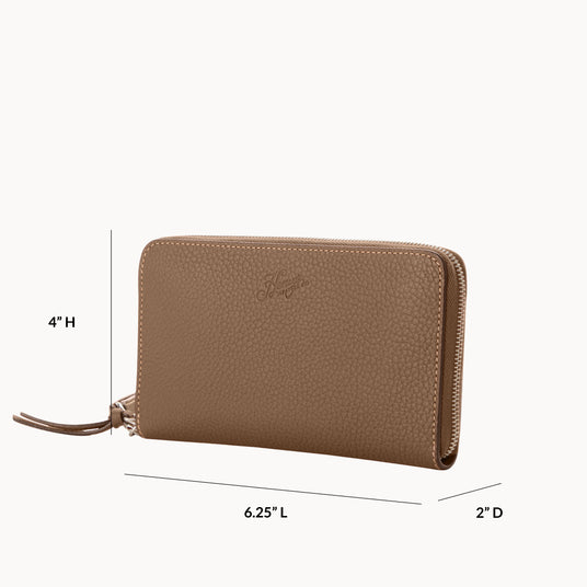 A secure wallet, thanks to an all-around zipper, offering a huge amount of storage. Customize your look with a detachable wrist strap!Details
