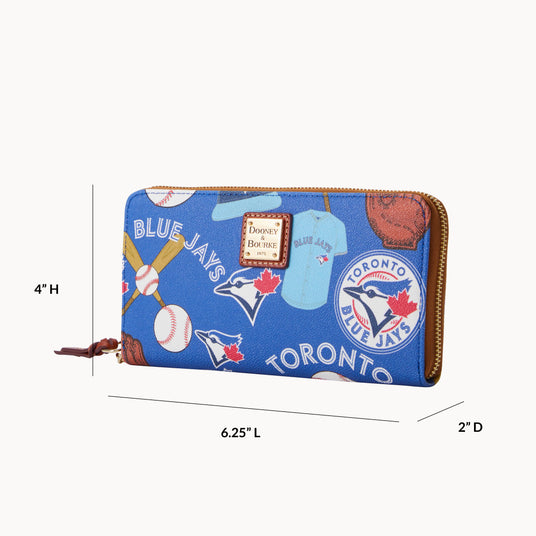 Support your team in style with this zippy wristlet, made of coated cotton featuring your favorite team. Go Jays!Details