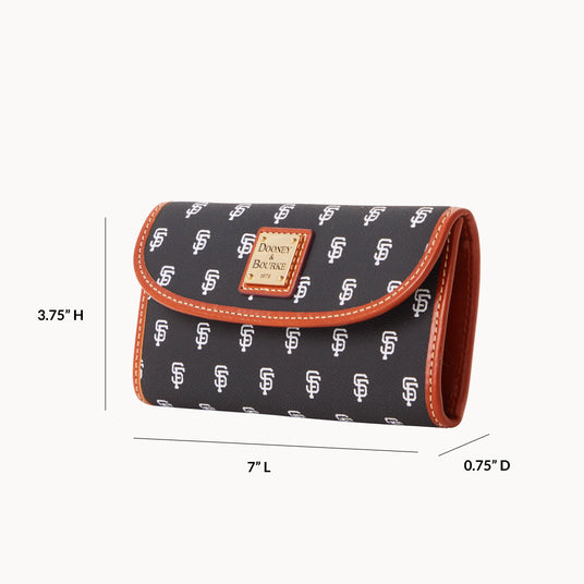 - One outside zip pocket. One inside pocket. License pocket with window. Two bill compartments. Eight credit card slots.
