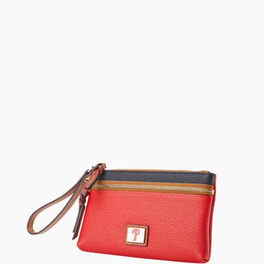 • Outside front zip pocket. One inside zip pocket. Six credit card slots.