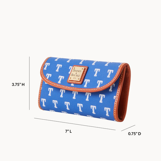- One outside zip pocket. One inside pocket. License pocket with window. Two bill compartments. Eight credit card slots.