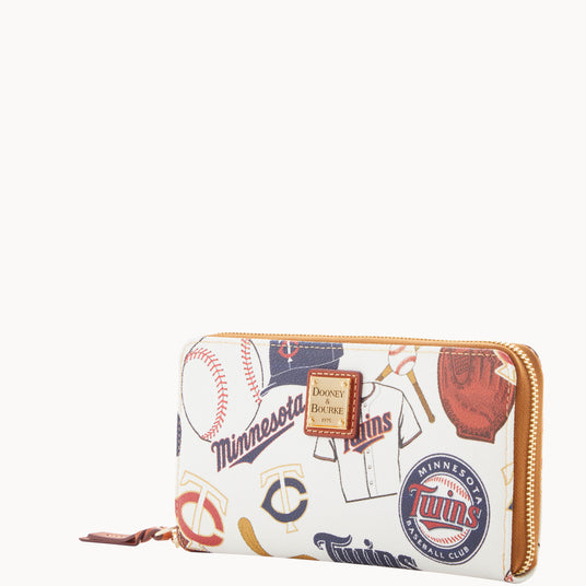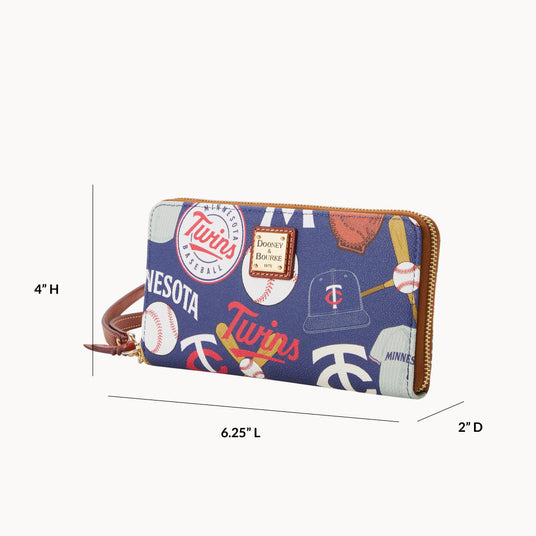Support your team in style with this functional wristlet, made of coated cotton featuring your favorite team. Go Twins!Details