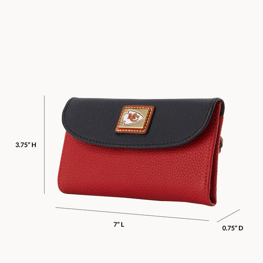 - One outside zip pocket. One inside pocket. License pocket with window. Two bill compartments. Eight credit card slots.
