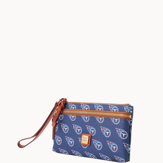 - Outside front zip pocket. One inside zip pocket. Six credit card slots.