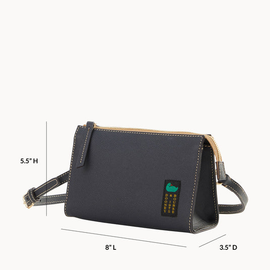 A sleek, embossed Italian leather crossbody that’s lightweight and compact, offering an adjustable strap and multiple secure pockets to keep your essentials organized and easily accessible.Details