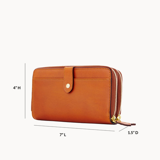 Designed for effortless sophistication, this organizer transitions seamlessly from day to night. Carry it as a sleek standalone wallet for quick errands, slip it inside your favorite tote for travel, or use it as a clutch for evenings out. The secure double-zip design and refined silhouette make it a versatile companion that combines everyday practicality with timeless elegance.
