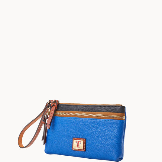 • Outside front zip pocket. One inside zip pocket. Six credit card slots.