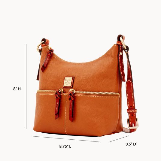 Plenty of pockets and a relaxed, hobo shape define this pebbled-leather crossbody, created to join every adventure in classic, American style. A signature logo stamps the front, while contrast bridle leather punctuates the design.Details