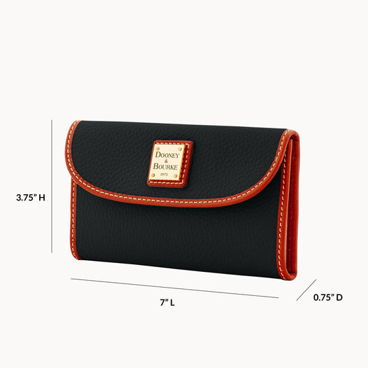 This classic clutch, made from pebble leather with a natural grain that hides signs of daily wear, organizes your cards, has a zippered pouch for your spare change, and an ID window for easy access.Details