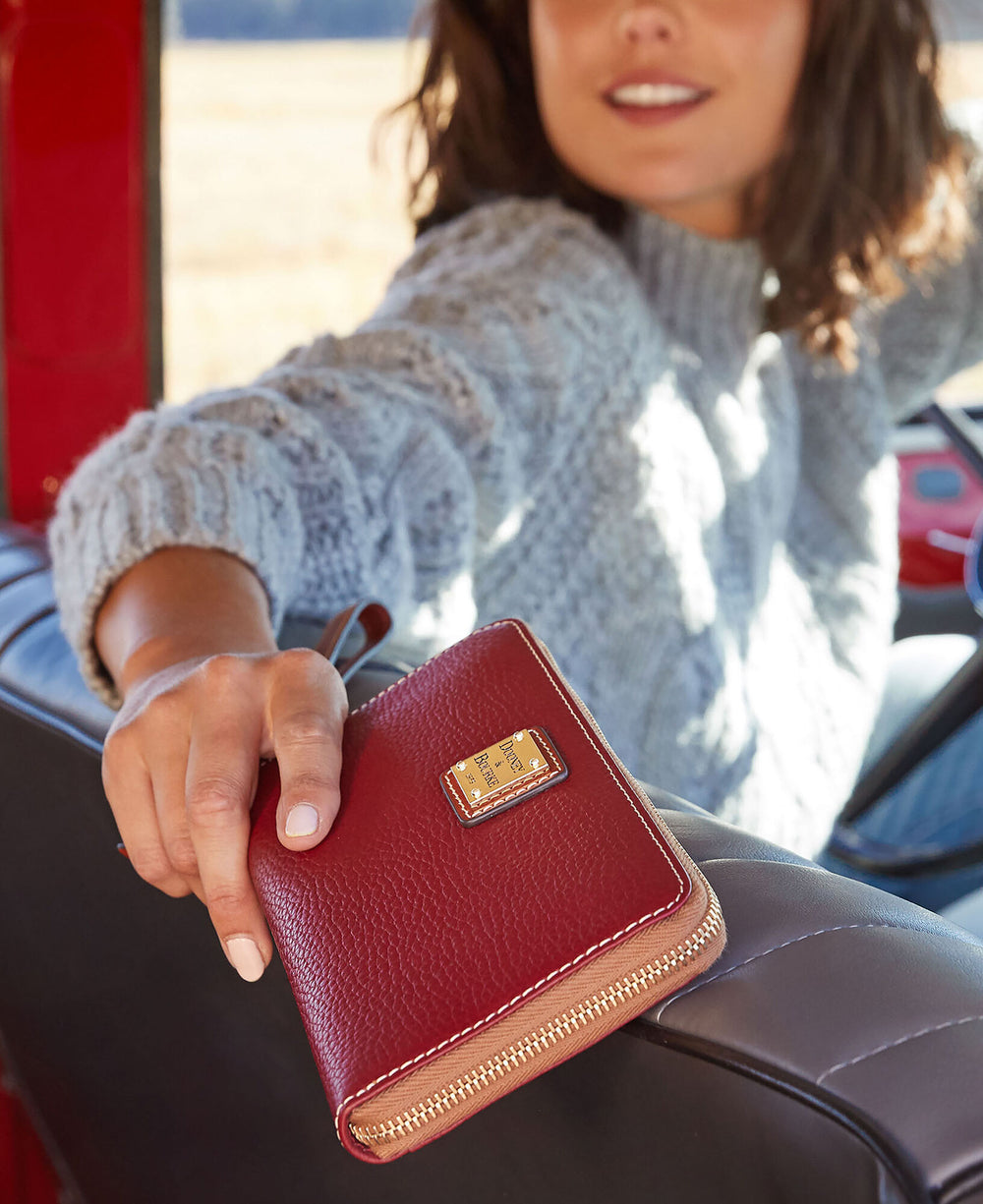 The zip-around closure keeps your belongings secure, and the detachable wrist strap (7″ length) makes it easy to carry on its own or tuck into your favorite Dooney handbag.