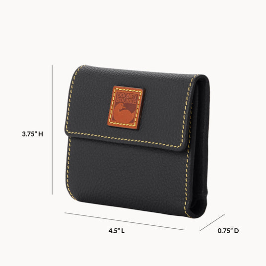 This petite wallet, made from textured leather with a natural grain that hides signs of wear, streamlines your valuables and slips neatly inside your favorite bag.Details