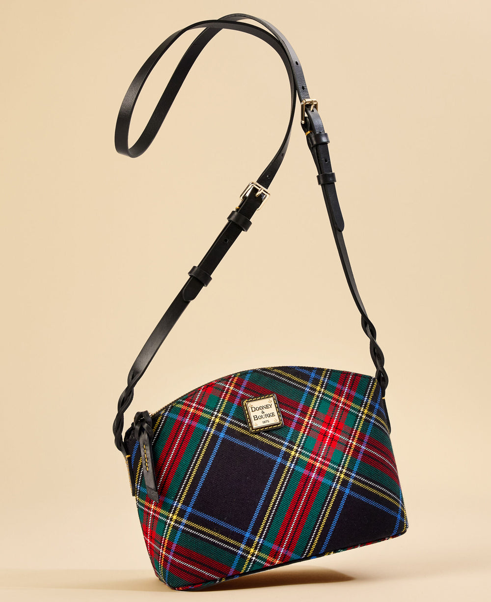 This cozy woven cotton fabric has a plaid pattern that's both modern and a little bit retro. An uncomplicated crossbody with a domed top, structured bottom, and exterior pocket on the back.Details