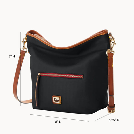 This crescent crossbody, made from lightweight nylon that's easy to clean and maintenance-free, has All-American style with a practical spin.Details