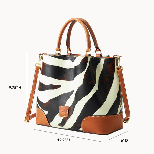 Roomy, organized, and even better with age. That's the beauty of this look, crafted from Italian Vacchetta leather with a striking zebra print.Details