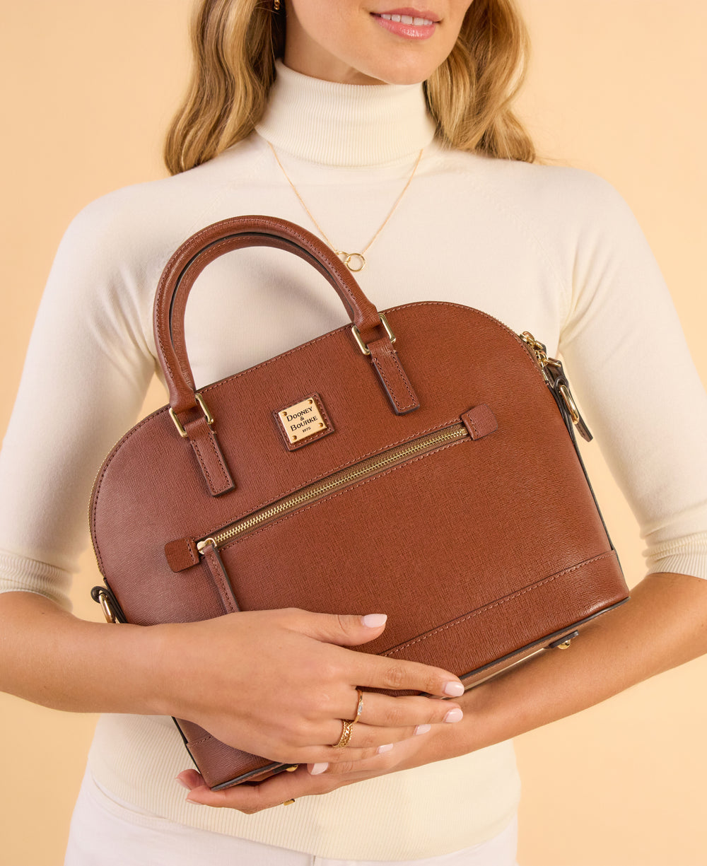Saffiano Domed Zip Satchel