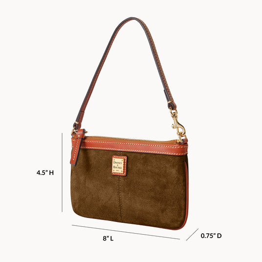 Slim yet surprisingly roomy, the Suede Large Slim Wristlet comfortably fits your phone, cards, cash, lipstick, and keys, everything you need when you’re traveling light. The zip-top closure keeps everything secure, while the detachable wrist strap lets you carry it solo for evenings out or tuck it neatly inside your tote for organized storage on busy days.